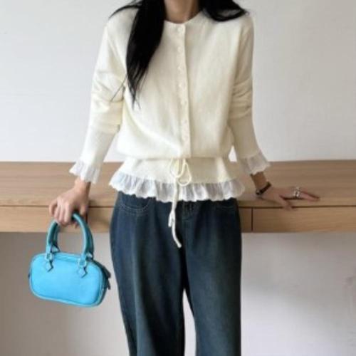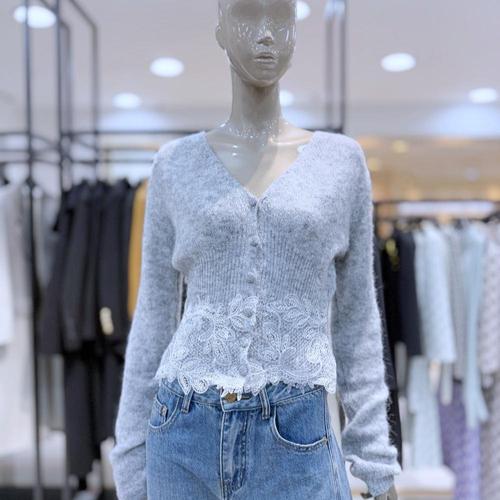 메종블랑쉬 세이브존03 밑단 레이스 포인트 라운드넥 니트 가디건 AGM254JKTB07A