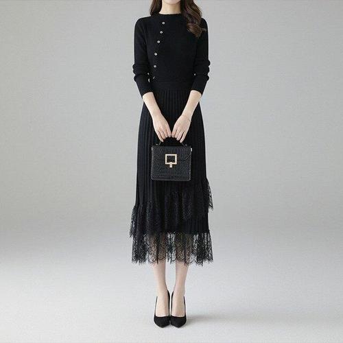 니트 골지 레이스 포인트 여성 롱 드레스