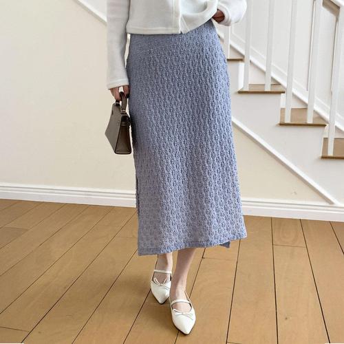 [시크블랙]에르온 슬릿 레이스 밴딩 롱 스커트