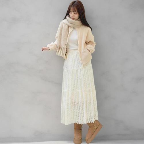 여자 스커트 플리츠 레이스 기모 겨울 허리 밴딩 롱 MACHI4
