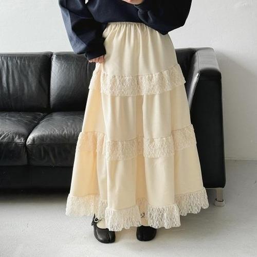 [페이지플린]안 밴딩 밑단 레이스 벨벳 롱 스커트 F5CSK508