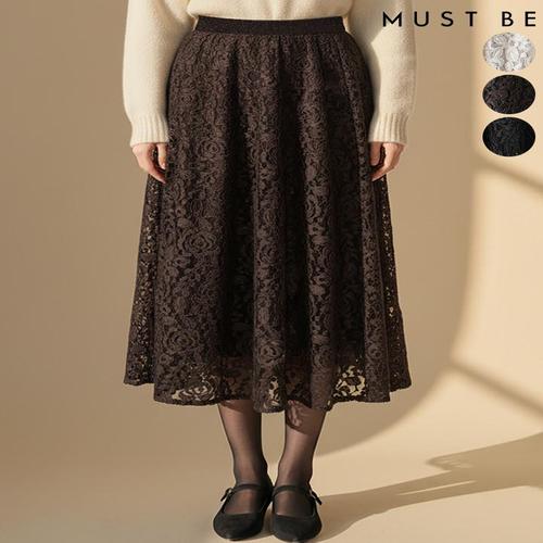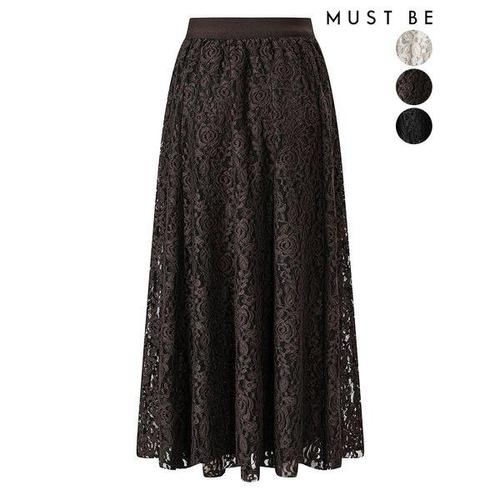 [머스트비]여성 벨벳 레이스 밴딩 롱스커트
