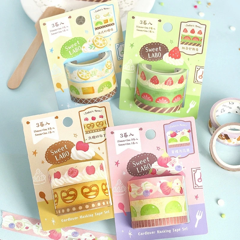 MINKYS 3개/갑 귀여운 과일 장식 테이프 크리에이티브 와시 테이프 다시 학교로 학교 문구