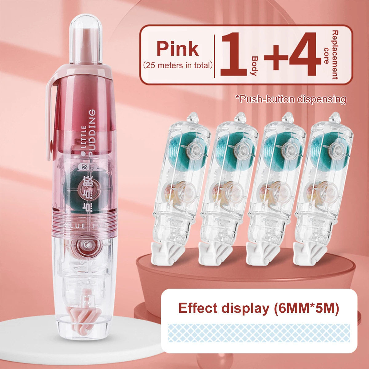 귀여운 점 접착제 테이프 양면 접착 롤러 어린이를위한 푸시 가능 및 리필 가능 소녀 DIY 사진 앨범 학교 문구 용품