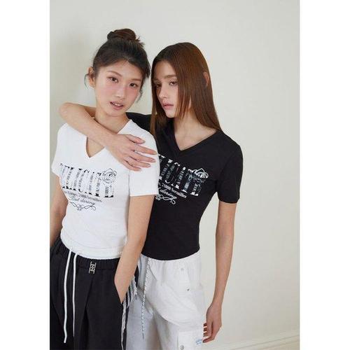 갤러리아_[Blue Label]V넥 레이스 패치 반팔 티셔츠[ES2OTH04]