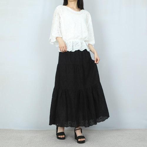 [파라노말샵](속치마) 3색 펀칭 레이스 캉캉 밴딩 롱 스커트 (파라
