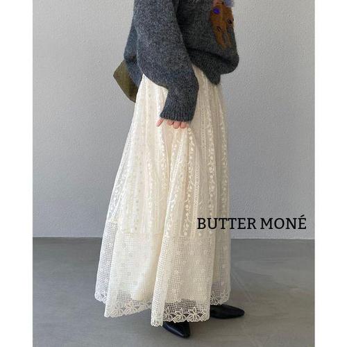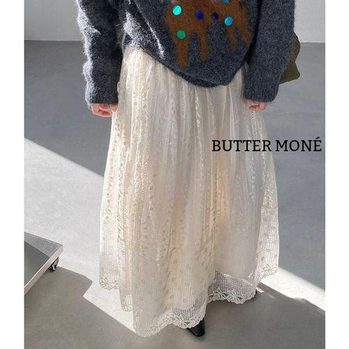 [에이치플러스몰]버터모네 크림아이보리 레이스 롱스커트 플레어 A라인 밴딩 안감 속치마 데이트룩 하객..