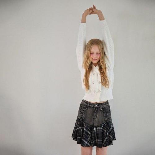 슬림소녀 여성 여름 날씬해보이는 모던한 분위기의 레이스 데님 스커트