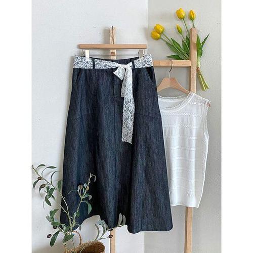 여성 데님 스커트 레이스 미디엄 A라인 스커트 빅사이즈 청치마 JY0016