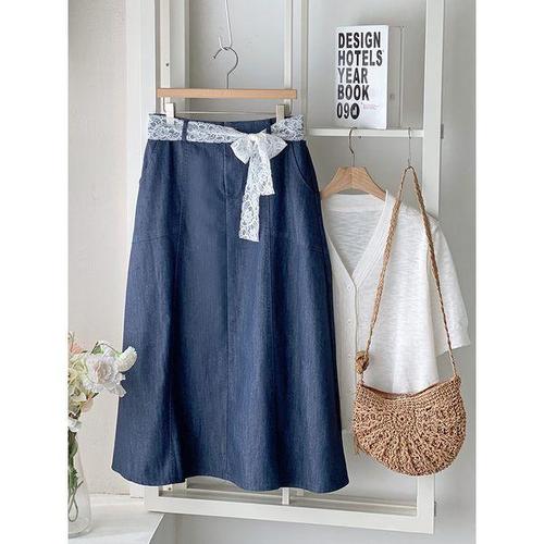 [엄지척]스커트 데님스커트 옆리본끈 레이스_19952891_667501