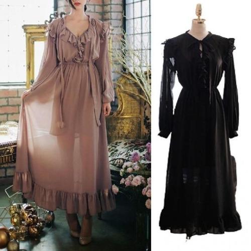 [엄지척](CESS) 2475 브이넥 프릴 긴팔원피스 속바지 프릴원피_19952504_667501