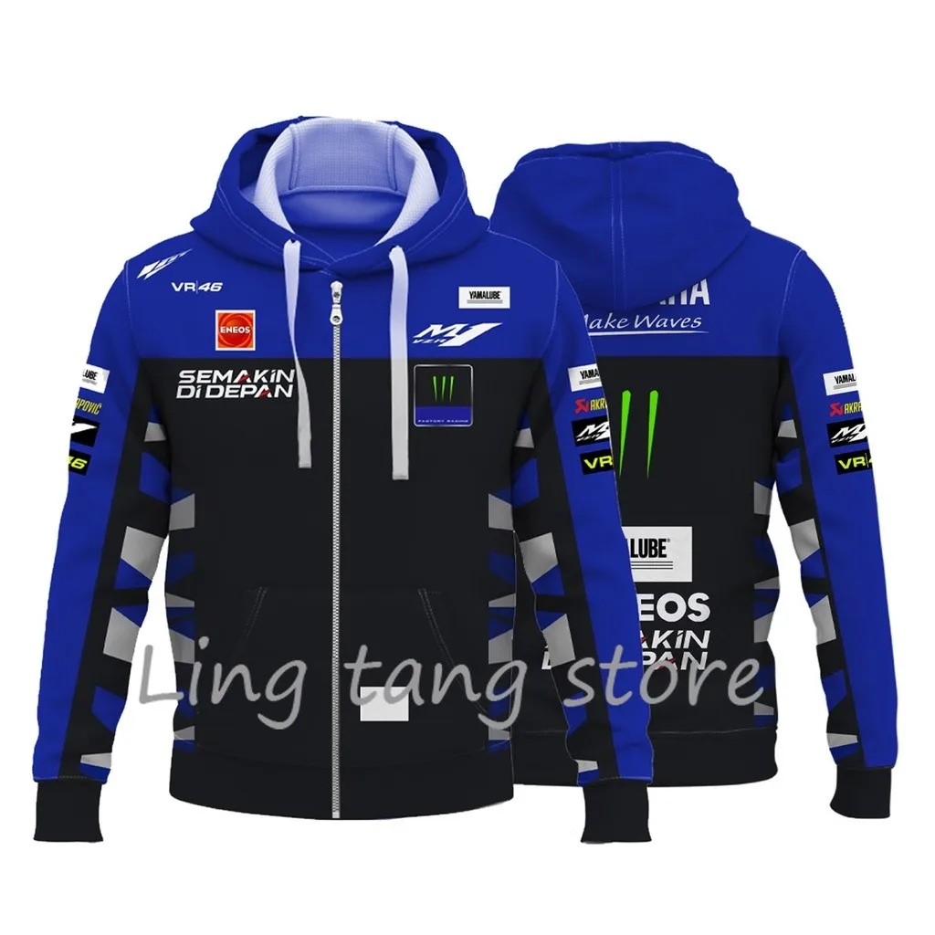 2025년형 야마하 모터사이클 레이싱 블루 지퍼 3D 후드티, 봄/가을 남성용 아웃도어 캐주얼 사이클링 재킷