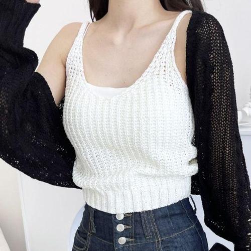 [에이치플러스몰]베이직 여성 니트 나시 여자 레이어드 끈나시 민소매