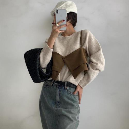 [옷자락] 여성 양면 투웨이 레이어드 버튼 스트랩 나시 가을 뷔스티에