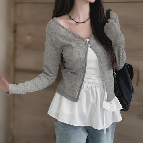 |CCH3F85|여성 니트 조끼 쉬폰 소매 블라우스 레이어드 스타일