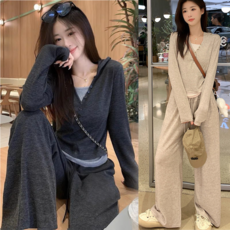 [미라클세븐][M7] 여자 레이어드룩 후드니트 골지 세트