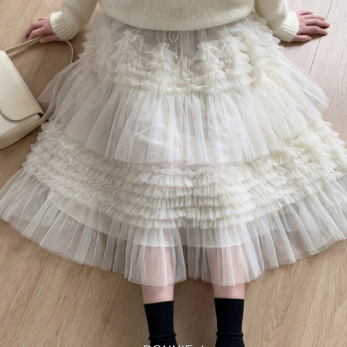 보니제이 / 여리핏 요정 무드 4컬러 레이어드 메쉬 샤 밴딩 롱 스