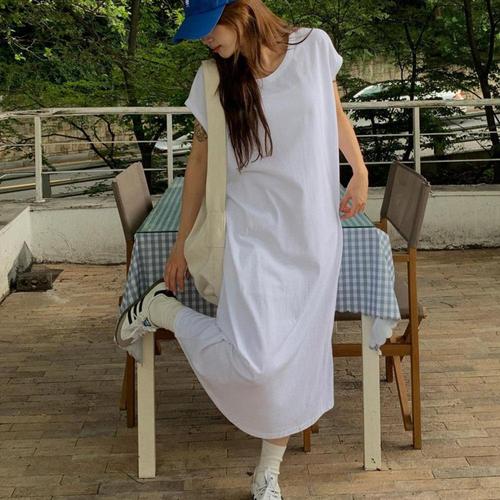 여자 코튼 돌만 레이어드용 민무늬 롱원피스