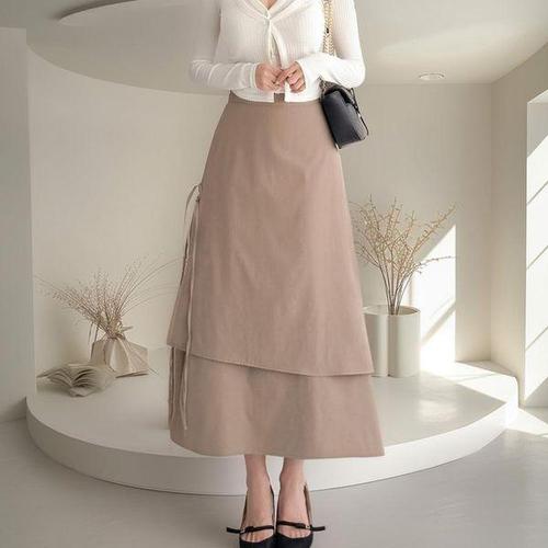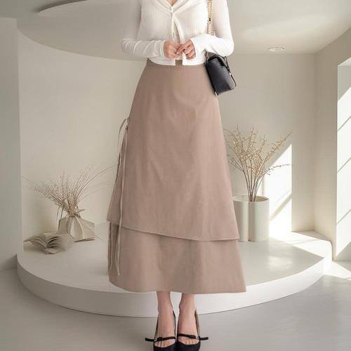 [신상오픈런]여자 힙무드 사이드 스트링 쉬폰 레이어드 롱 스커트