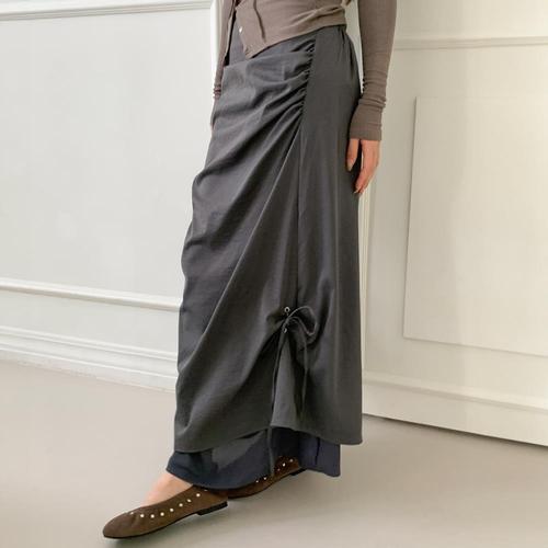 [옷자락]여성용 힙무드 레이어드 셔링 롱스커트