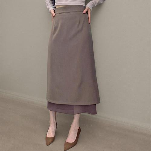 [옷자락]여성용 일상용 시스루 레이어드 롱스커트