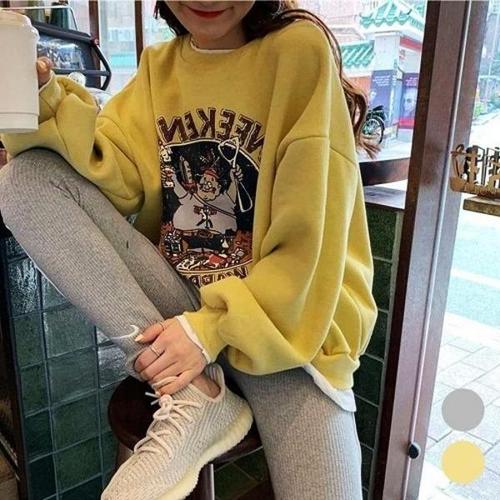 앨빈클로 남녀공용 레이어드 기모 오버핏 맨투맨 MAR884