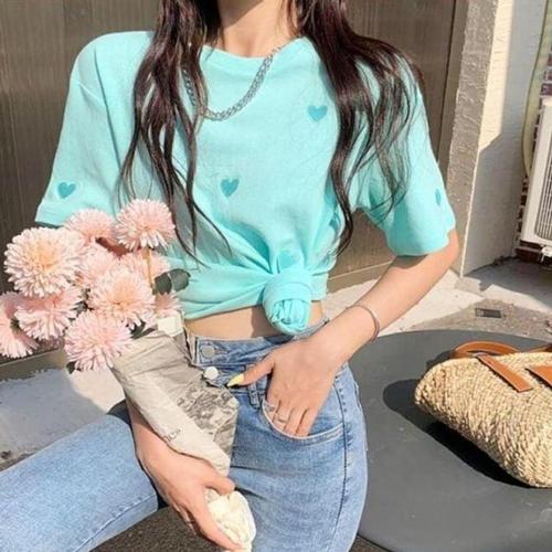 여름 크롭 티셔츠 클럽 룩 반팔 레이어드 용 반팔 WFKN2XH