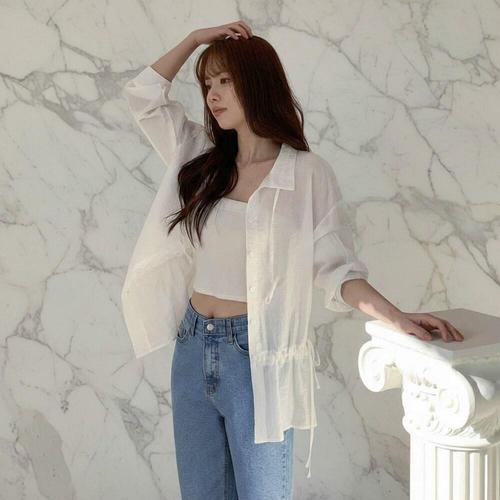 [미라클세븐]여성 루즈핏 스트링 레이어드 긴팔 셔츠