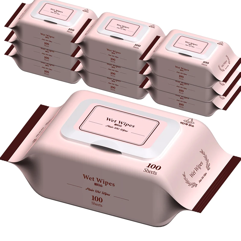 국내생산 9단계 정제수 저자극 물티슈 캡형 100매 X 10팩 대용량, 무향 플레인 레이온 물티슈
