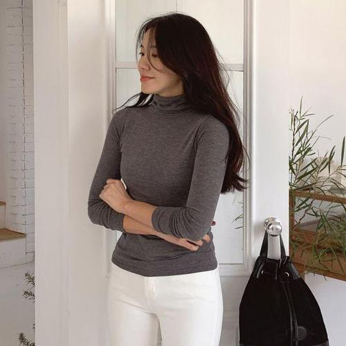 [유야]여성 기모 레이온 스판 무지 목폴라 긴팔티 -FTS0263- 겨울