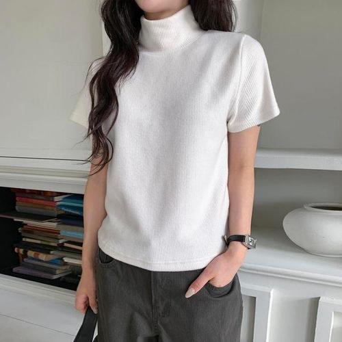 [신상오픈런]여성용 레이온 스판 하이넥 무지 반팔 티셔츠