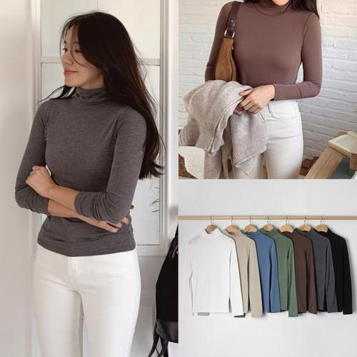 [유야]7컬러 기모 레이온 스판 베이직 무지 목폴라 긴팔 티셔츠 이너티 레이어드 기본티 -TS0263H- 여성 ..