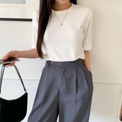 [하프클럽/]여성 레이온 스판 반목 반팔 세미크롭 티셔츠
