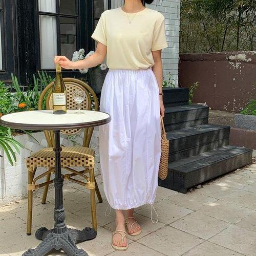 [신상오픈런]여성용 스판 레이온 무지 반팔 라운드 티셔츠