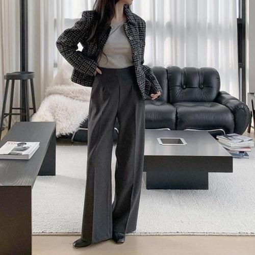 [신상오픈런]여성용 레이온 허리 끈 일자형 와이드 슬랙스 정장 팬츠