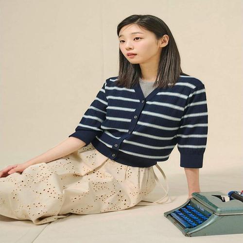 [빈폴레이디스]레이온 혼방 스트라이프 카디건 - 네이비 (BF535AC05R)
