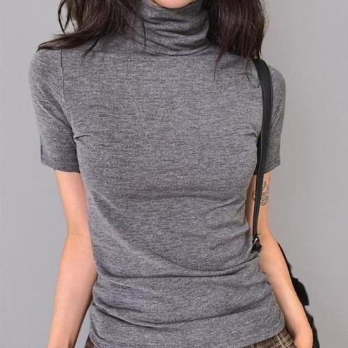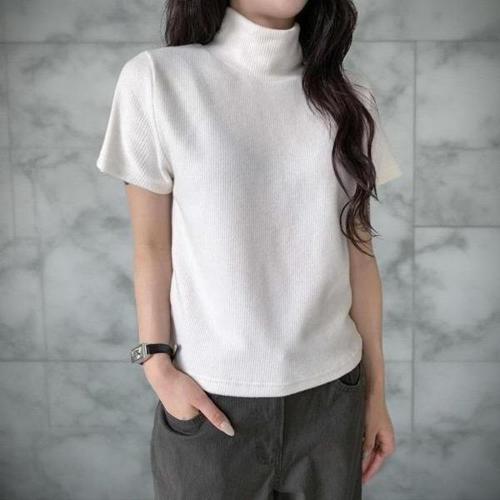[다잇템][다잇템] 여성 티셔츠 편한 하이넥 보온 레이온 골지 미니멀리즘 반팔_23652846_588872