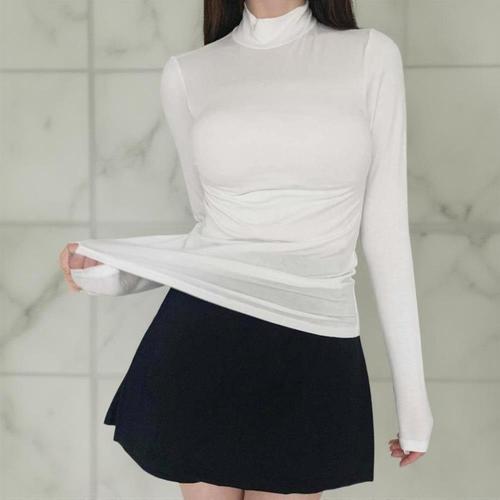 [옷자락] 여성 클래식 레이온 신축성 긴팔 반목 티셔츠