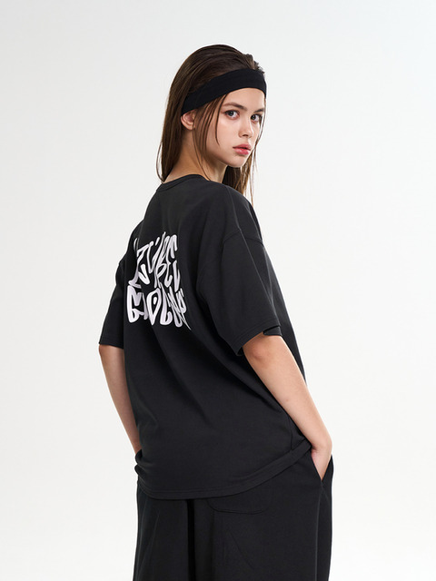 [레이지비] 시그니처 그래피티 오버핏 반팔 기능성 짐웨어 헬스 러닝 운동복 반팔 W 블랙2