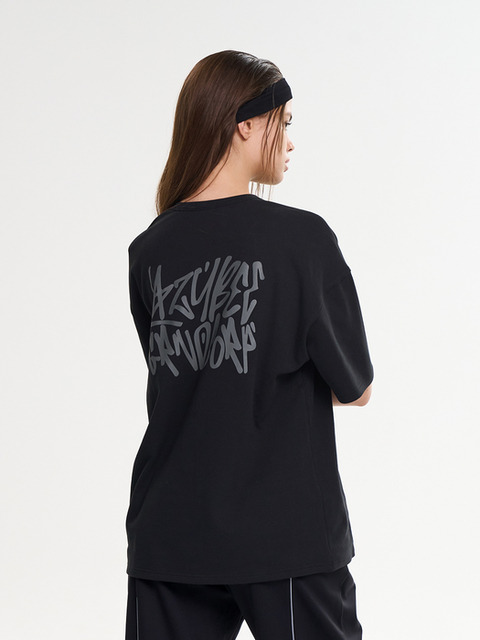 [레이지비] 시그니처 그래피티 오버핏 반팔 기능성 짐웨어 헬스 러닝 운동복 반팔 W 블랙