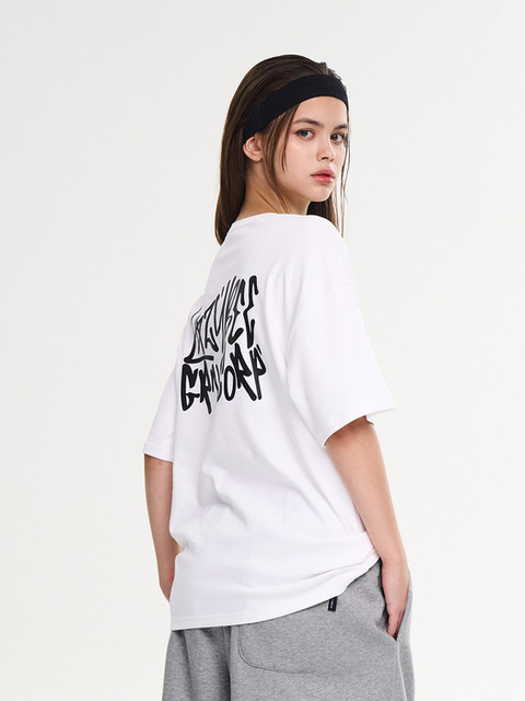 [레이지비] 시그니처 그래피티 오버핏 반팔 기능성 짐웨어 헬스 러닝 운동복 반팔 W 화이트