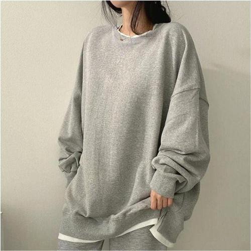[셀러허브_여성트랜드패션]Rly 여성 오버핏 무지 베이직 맨투맨 밑단 배색 레이