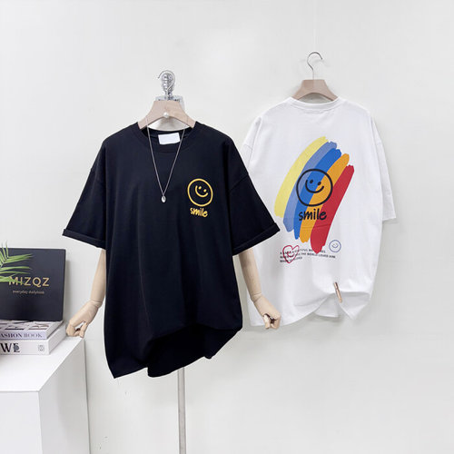 미즈큐즈 / 레인보우 스마일 프린팅 오버핏 남녀공용 반팔 티셔츠