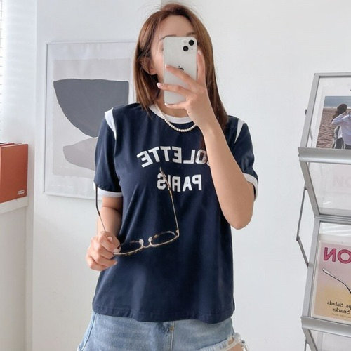 [셀러허브_여성트랜드패션]ONM 라운드 세미크롭 레터링 캐주얼 반팔티