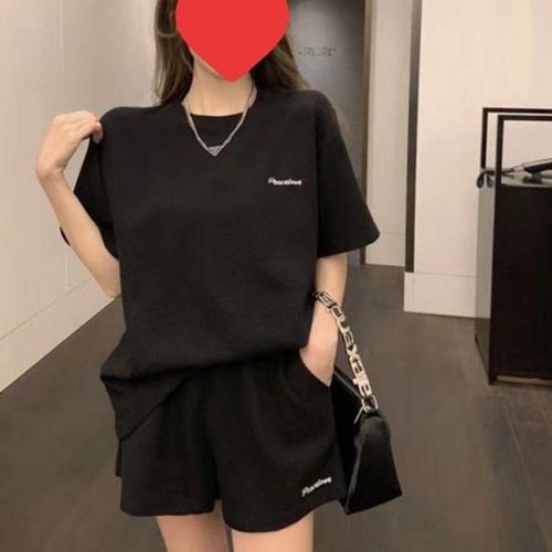 [옷자락] 여자 심플 레터링 와플 찰랑핏 반팔티 반바지 세트