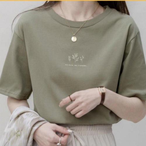 여성용 여름 반팔 루즈핏 실켓 레터링 티셔츠 WFLHZ08
