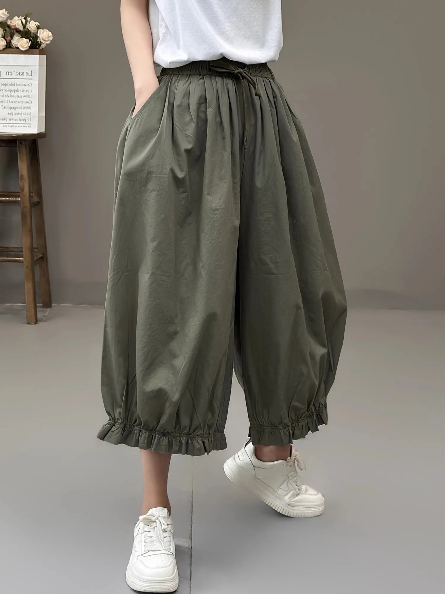 여름 신상 루즈핏 큰 사이즈 꽃봉오리 랜턴 팬츠 여성 레트로 캐주얼 단색 다용도 밴딩 와이드 레그 스커트 팬츠