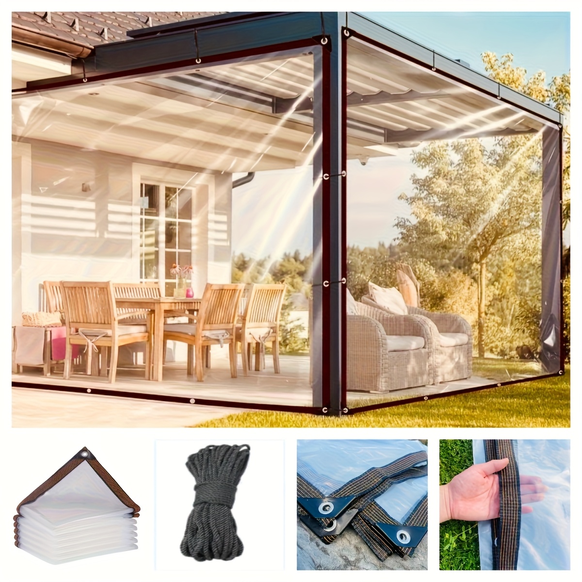 TEMU 1세트 투명한 고품질 타프천과 끈 - 드릴링 없이 쉬운 설치, 자외선 차단 & 방풍 클리어 플라스틱 커버 (온실, 캠핑, 발코니, 파티오, 정원용) - 겨울철 식물 보호, 방수 & 내한성, 야외 사용에 적합(조절 가능), 고품질 캠핑 타프, 헤비듀티 타프, 고품질 방수포, 야외 커튼, 끈형 엣지, UV저항 소재, 강화된 에지 홈 가든