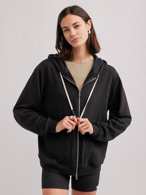 [로라로라] NUBASIC CROP HOODED ZIP-UP BLACK