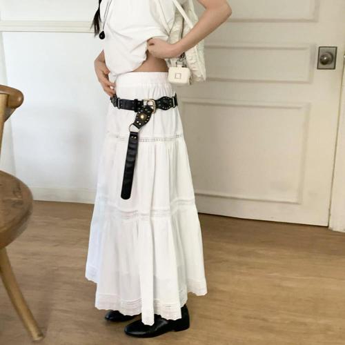 [옷자락] 여자 봄 여름 데일리 로맨틱 여리여리 레이스 롱 스커트
